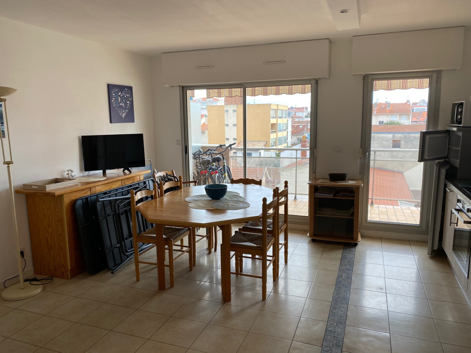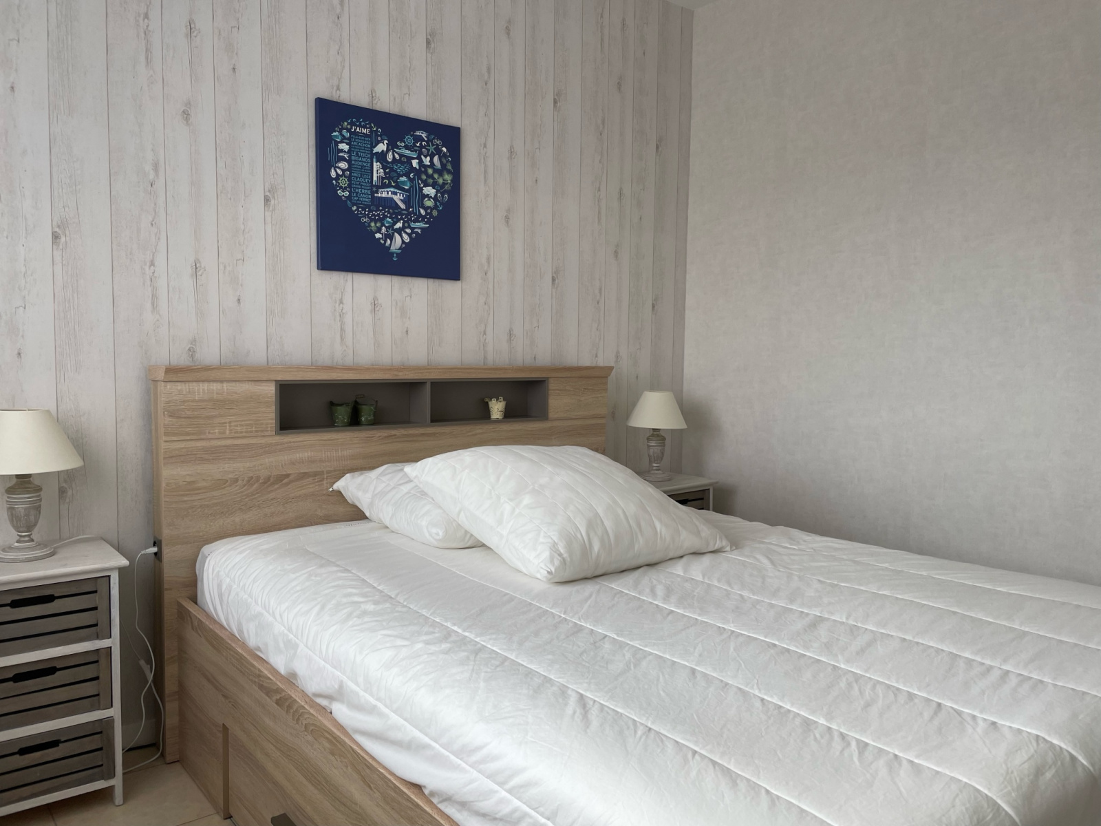 Cet appartement de type 2 se situe au troisième étage avec ascenseur. Il se compose d'une entrée desservant un séjour et sa grande terrasse au calme, une cuisine ouverte et équipée (lave-vaisselle, grille pain, cafetière, hotte, four, micro ondes, réfrigérateur). La partie nuit se compose d'une chambre avec un lit double 140 ainsi que trois couchages supplémentaires dans le séjour (un canapé-lit double 140 et un fauteuil lit taille 70). Une salle de bain et des WC indépendants viennent compléter l'ensemble.