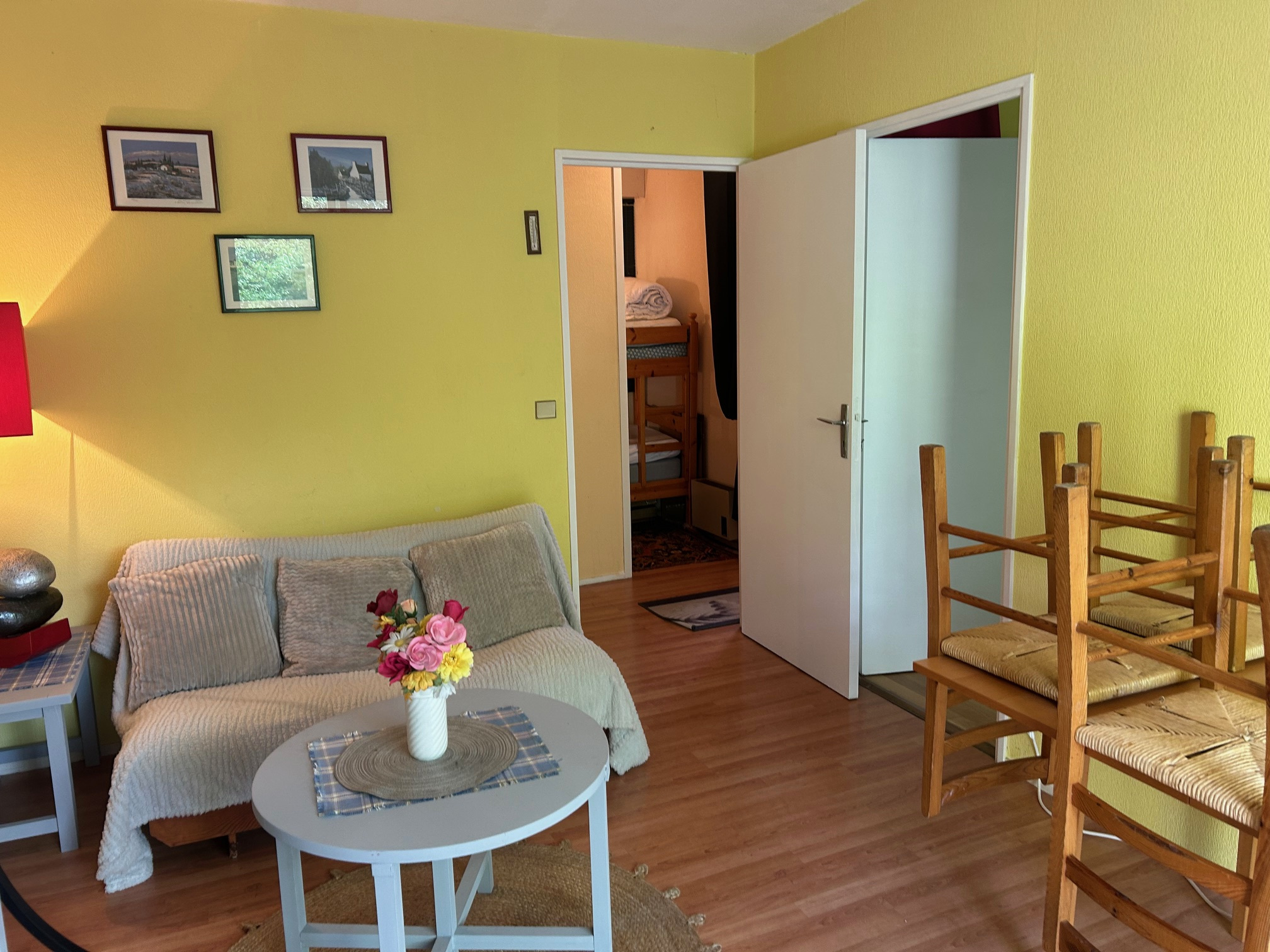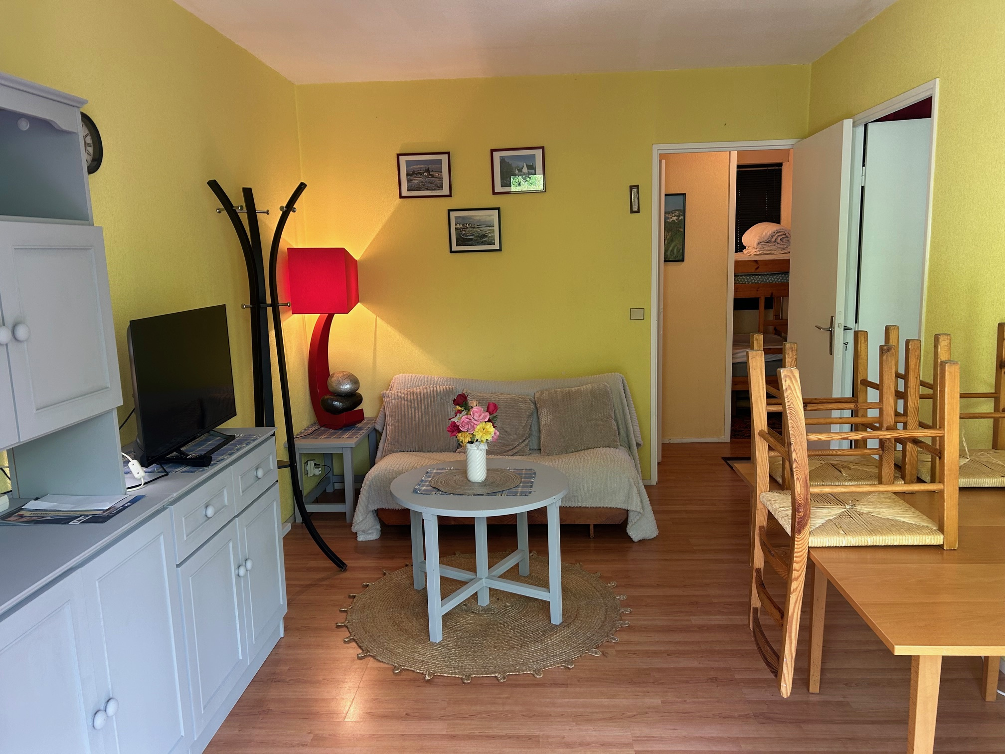 Un séjour avec canapé, pouvant accueillir éventuellement un enfant