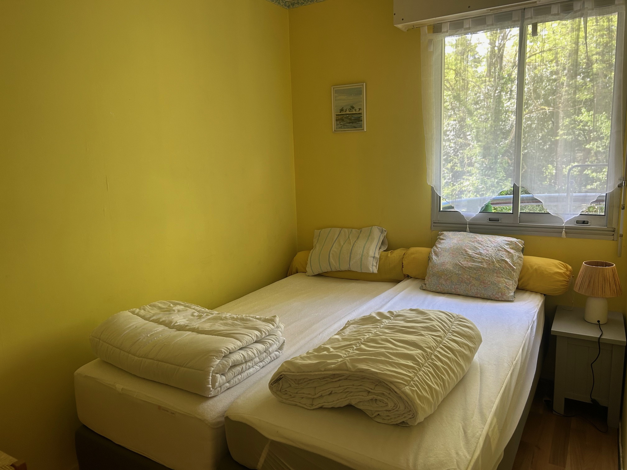 Une chambre avec deux lits en 90 cm, pouvant être rapprochés
