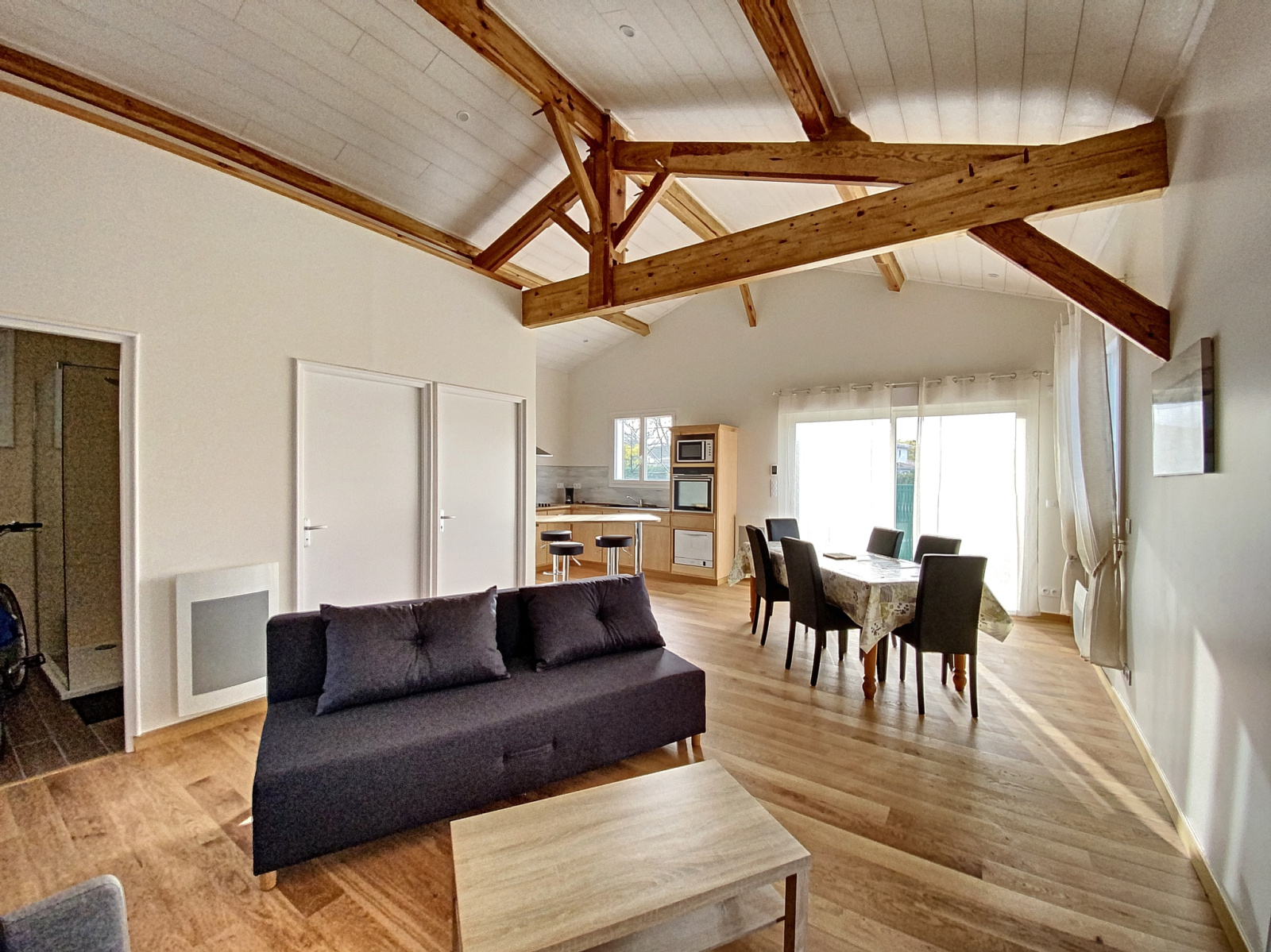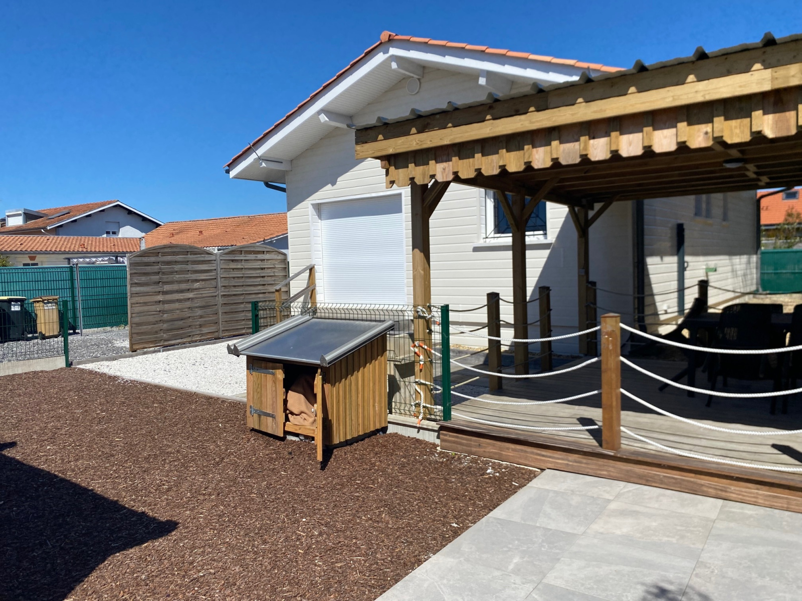 A la teste commune du bassin d Arcachon, venez profitez du confort d une maison recente de plain pied, elle comprend un séjour cathédrale avec sa cuisine équipée ( la vaisselle, lave linge...) un canapé lit 130 cm de large , 2 chambres avec lit 140, une salle d eau, un WC, un cellier, une terrasse extérieur et son barbecue, un parking, un accès au WI FI, 2 vélos adultes et 2 enfants. ménage inclus et draps en option payante. possibilité d un animal calme et propre pour lui aussi profiter des vacances.