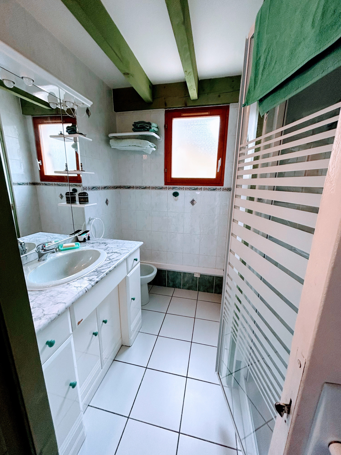 Le chalet dispose de trois chambres confortables : une chambre avec lit double en 160 cm, une seconde avec lit en 140 cm et une troisième avec un lit simple, permettant d’accueillir famille et amis dans d’excellentes conditions. L’ensemble est équipé de la climatisation, garantissant un confort optimal .