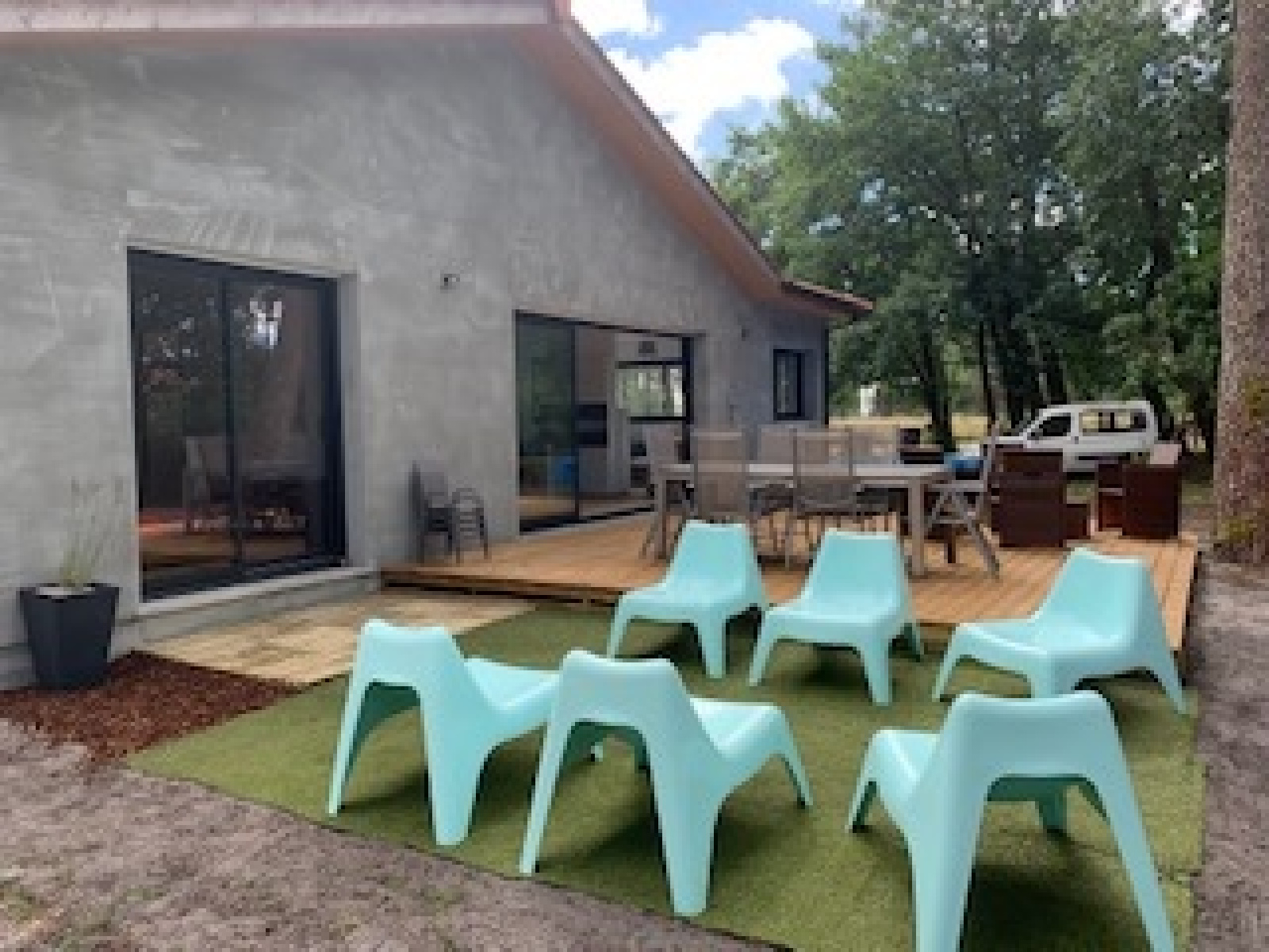 Salon de jardin, table de jardin, barbecue sont à votre disposition. Jardin de 2000 m² clôturé sans portail. Parkings.