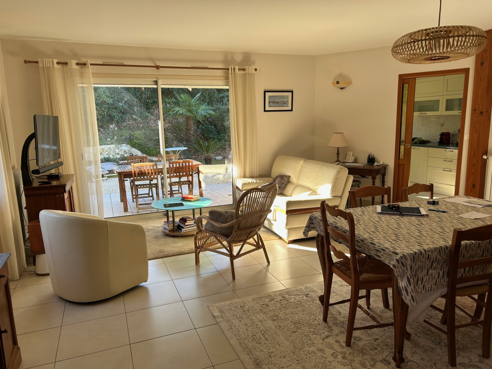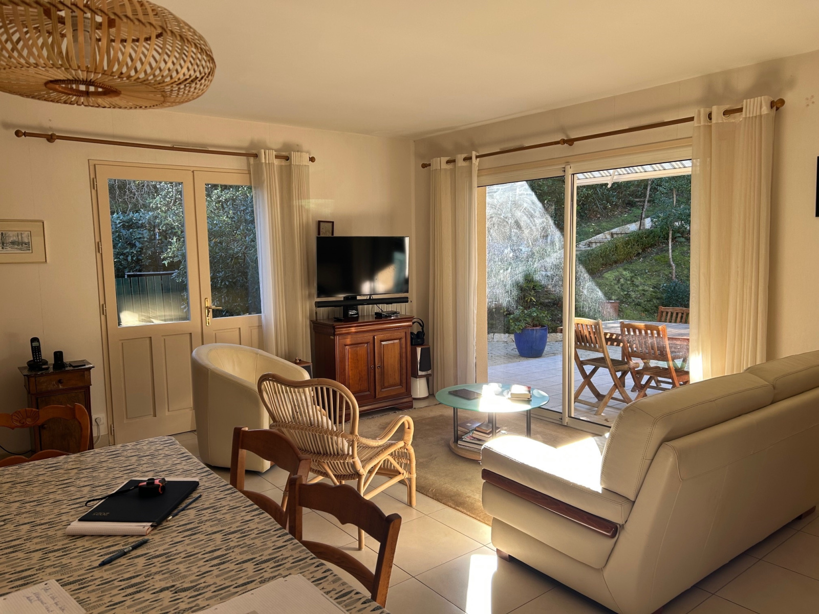 La maison dispose d'un salon convivial, parfait pour se retrouver en famille ou entre amis.