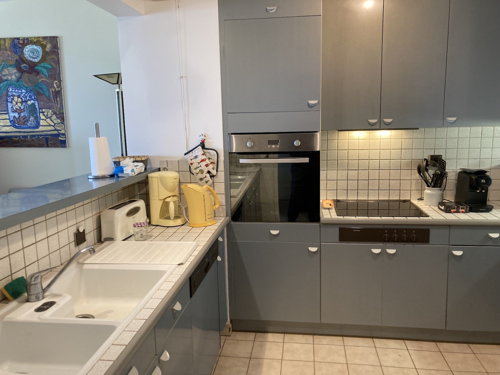 Cuisine ouverte, entièrement équipée : plaques vitro-céramiques, four, hotte aspirante, micro-ondes, réfrigérateur-congélateur, lave-vaisselle, cafetière expresso, cuiseur vapeur, vaisselle, etc…