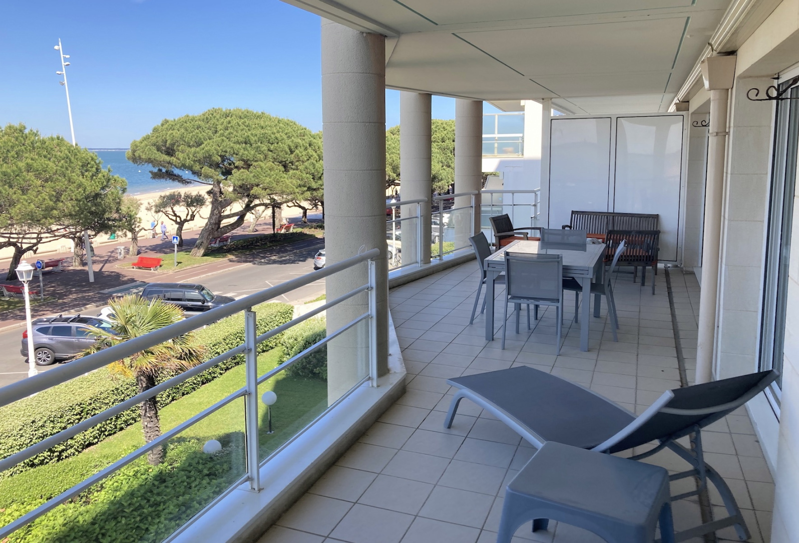 Au 2ème étage (avec ascenseur) d’une résidence de très bon standing en première ligne, en face de la plage.