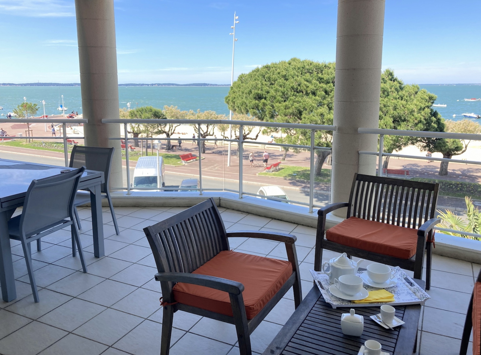 Au centre d'Arcachon, sur la PROMENADE du FRONT de MER, à 300m de la jetée Thiers, proche de tous commerces, agréable appartement T3 de 81m2 environ, classé résidence de tourisme 3 étoiles.