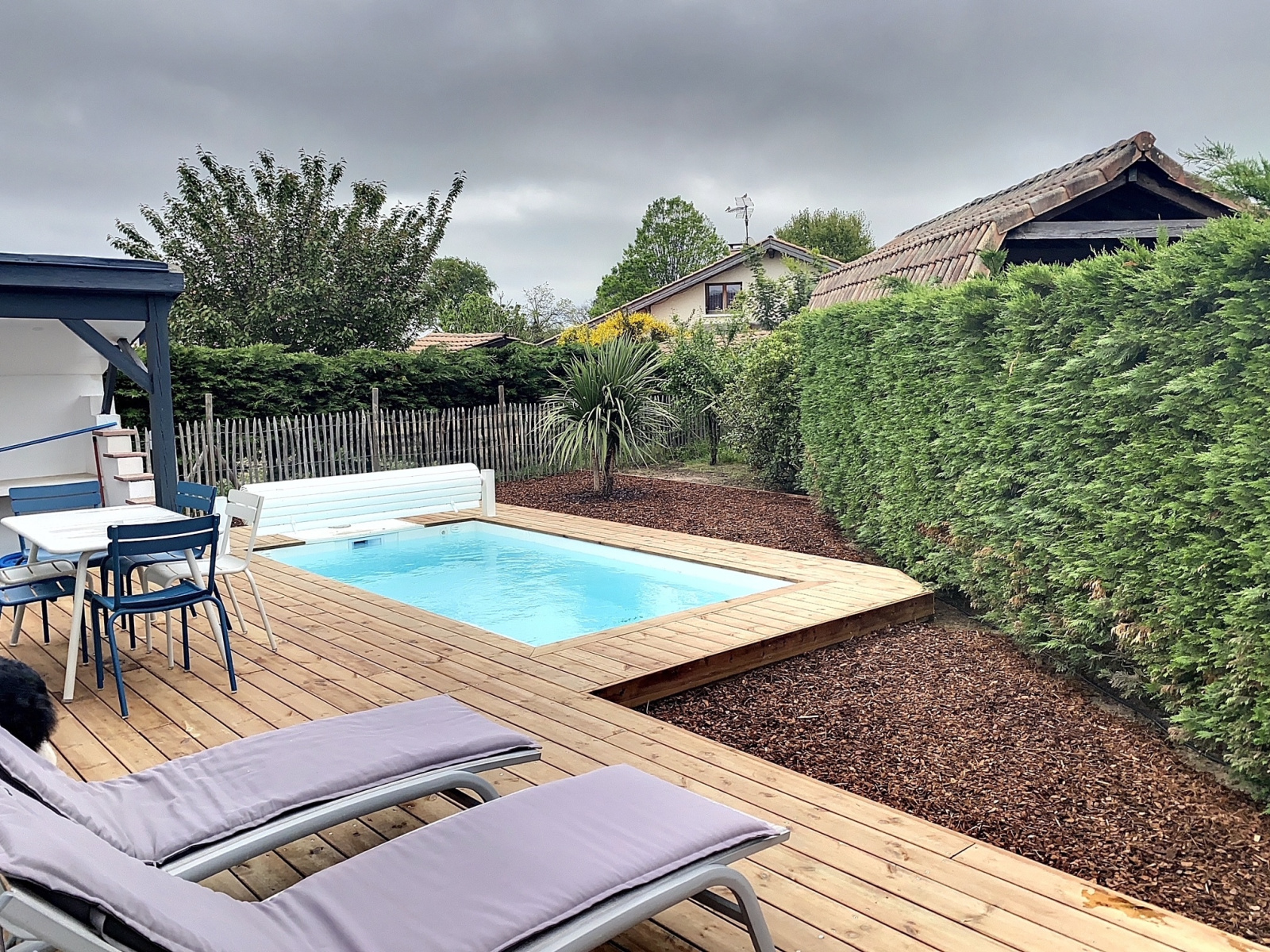 enez découvrir le Bassin d'Arcachon dans cette belle maison jumelé et mitoyenne sur un coté moderne dans un quartier résidentiel au calme équipée d'une belle piscine, pouvant accueillir 7 personnes.