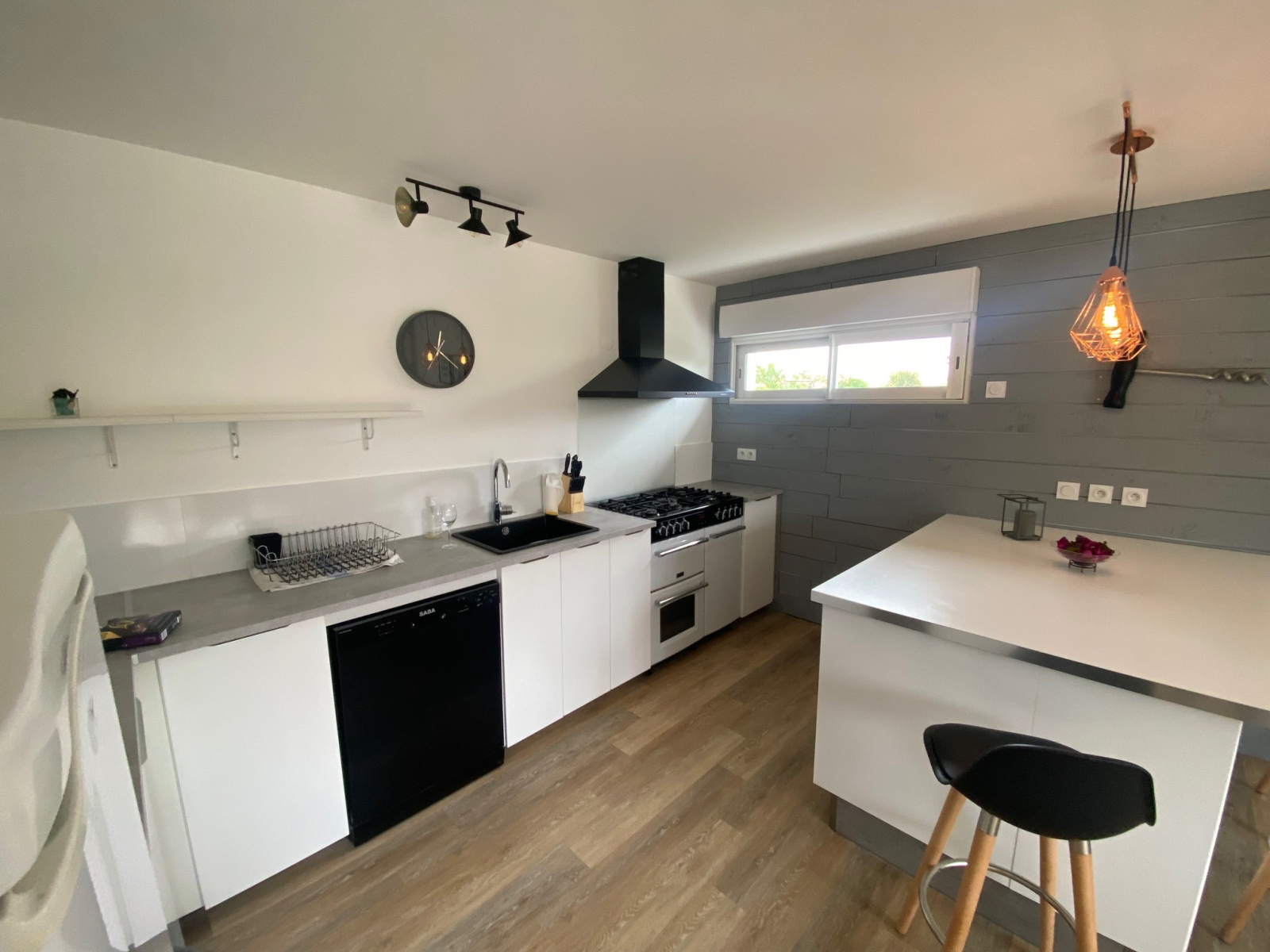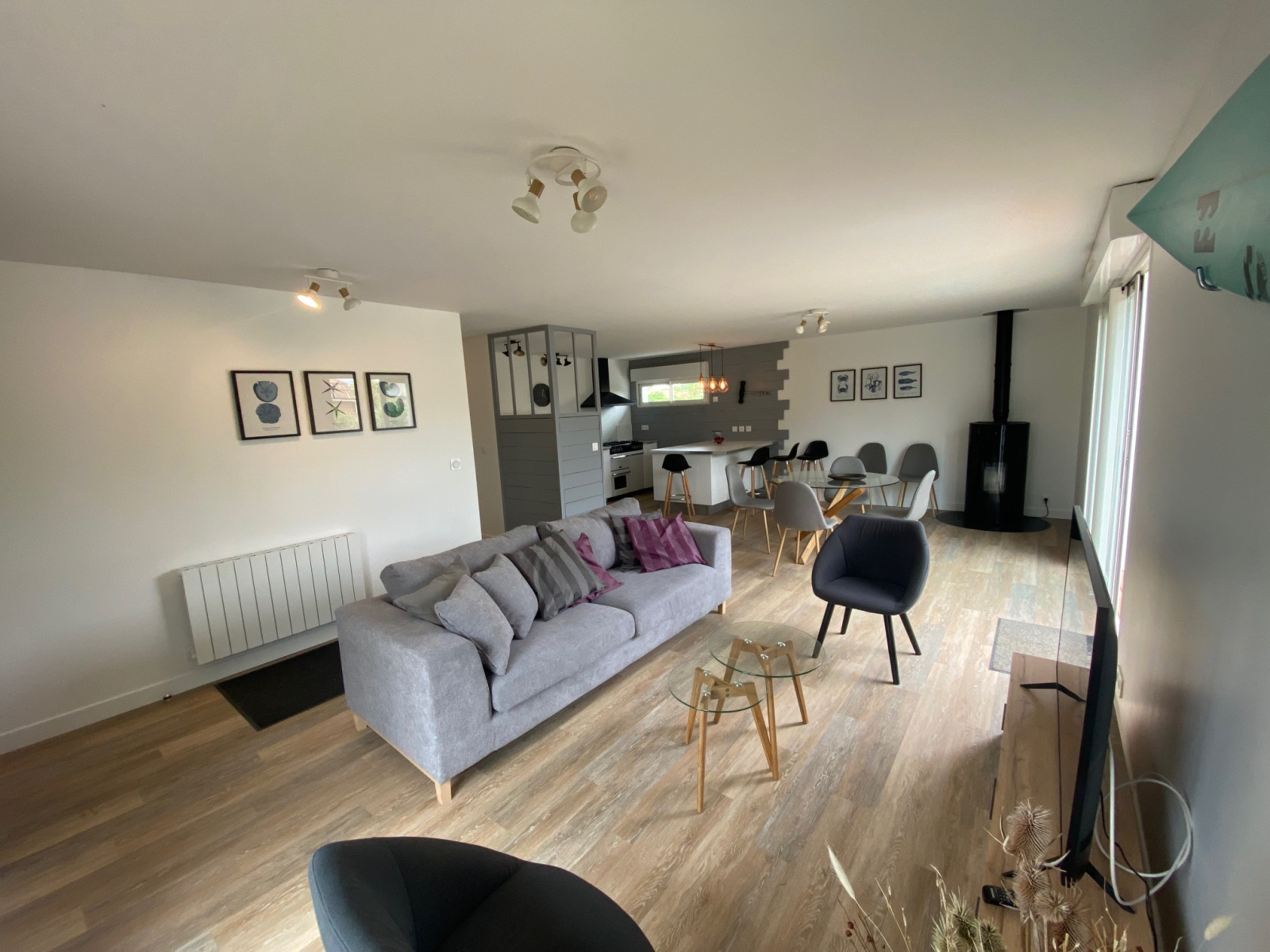 A l'intérieur de cette maison, vous pourrez profiter, d'une cuisine entièrement équipée ( lave vaisselle, micro onde, grille pain, frigo, cafetière Nespresso..) ouverte sur un salon/séjour lumineux, une première chambre (lit 160), une seconde chambre accompagnée d'un lit 140 + un lit simple et une troisième chambre avec un lit 140, une douche à l'italienne et un wc indépendant.