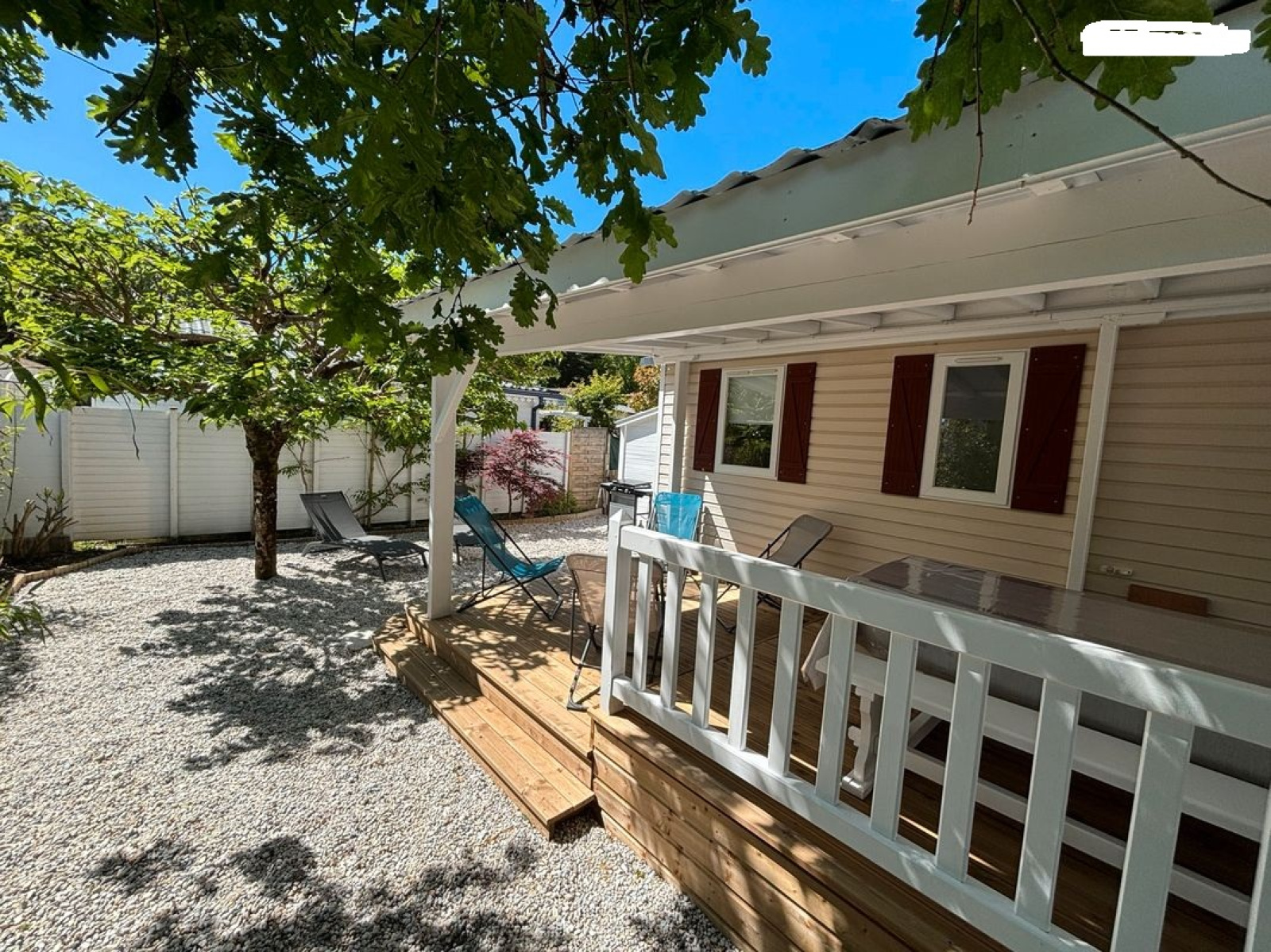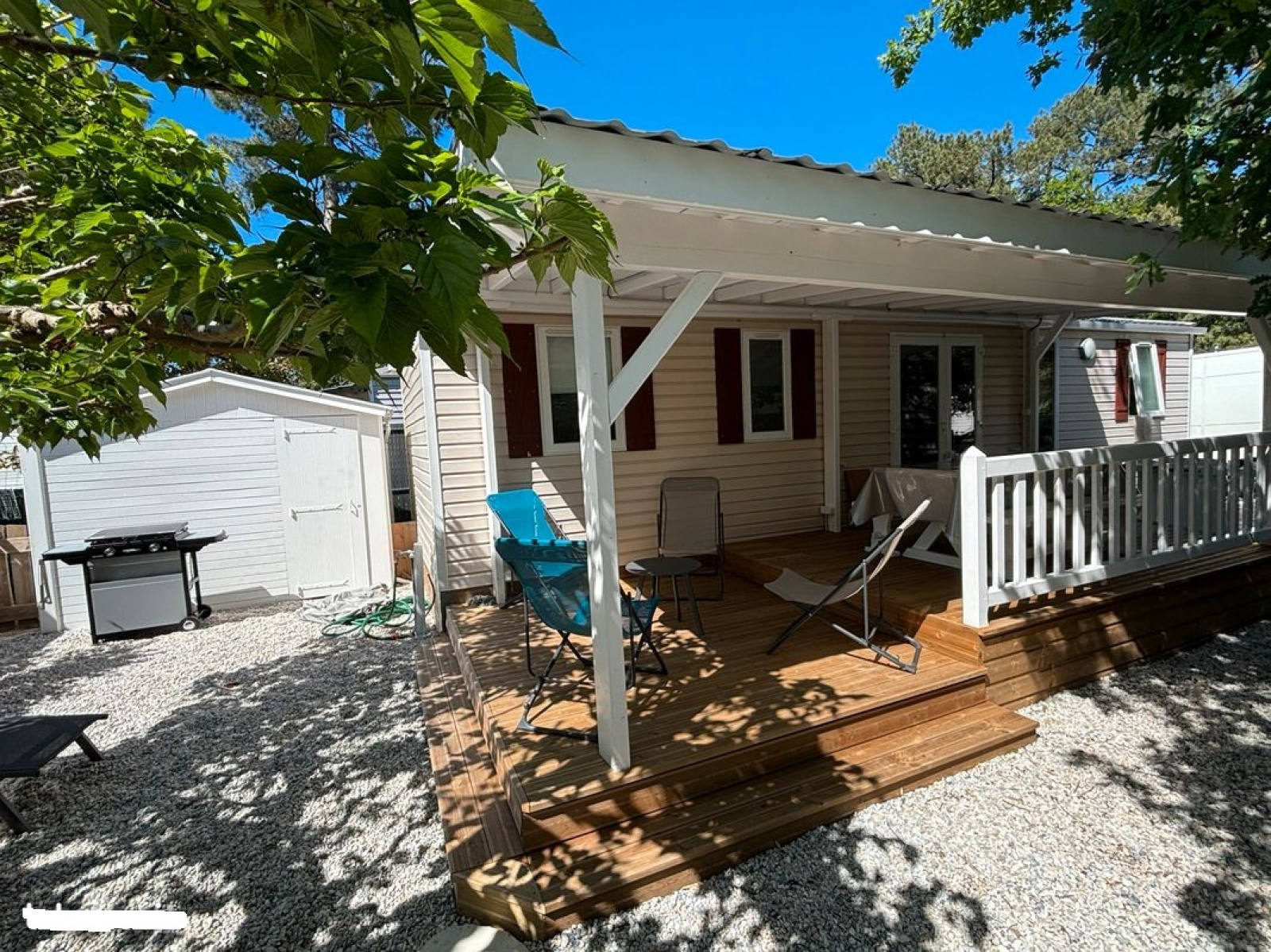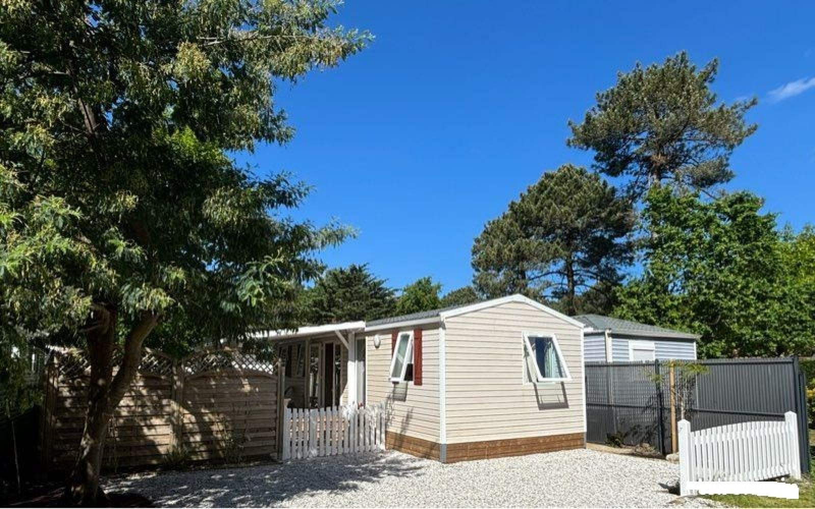Mobil home de 40m2 pour 6 personnes très confortable et climatisé sur un terrain arboré privatif et clôturé de 200 m². À vous le repos et la détente !
