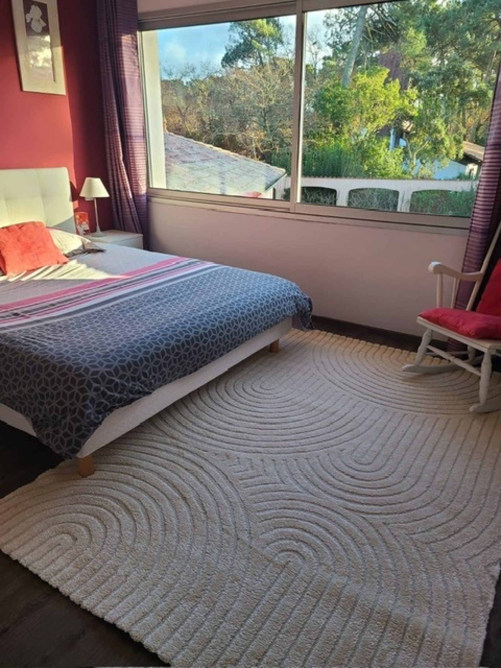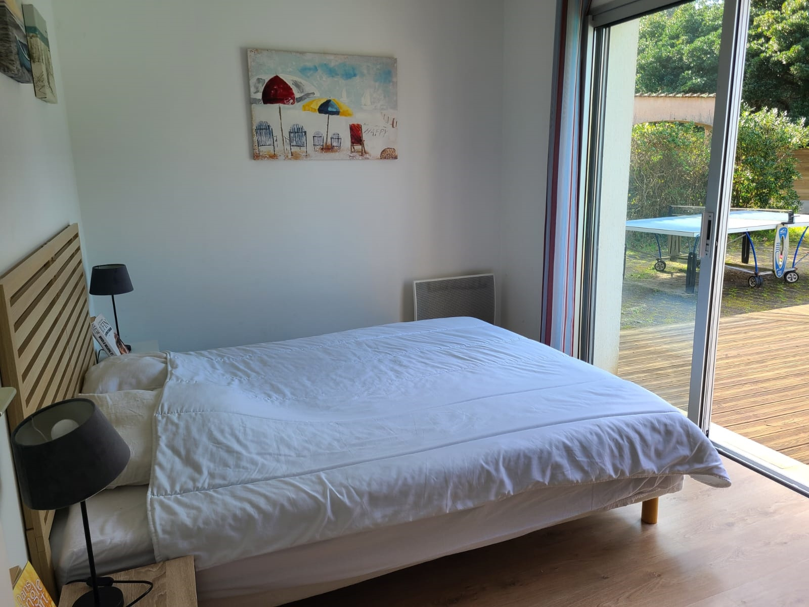 Elle comprend 5 chambres: 3 en rez de jardin dont 2 avec grands lits doubles (160) et baie vitrée donnant sur la piscine et 1 avec 2 lits simples, 1 sdb avec douche et baignoire + 2 wc séparés.