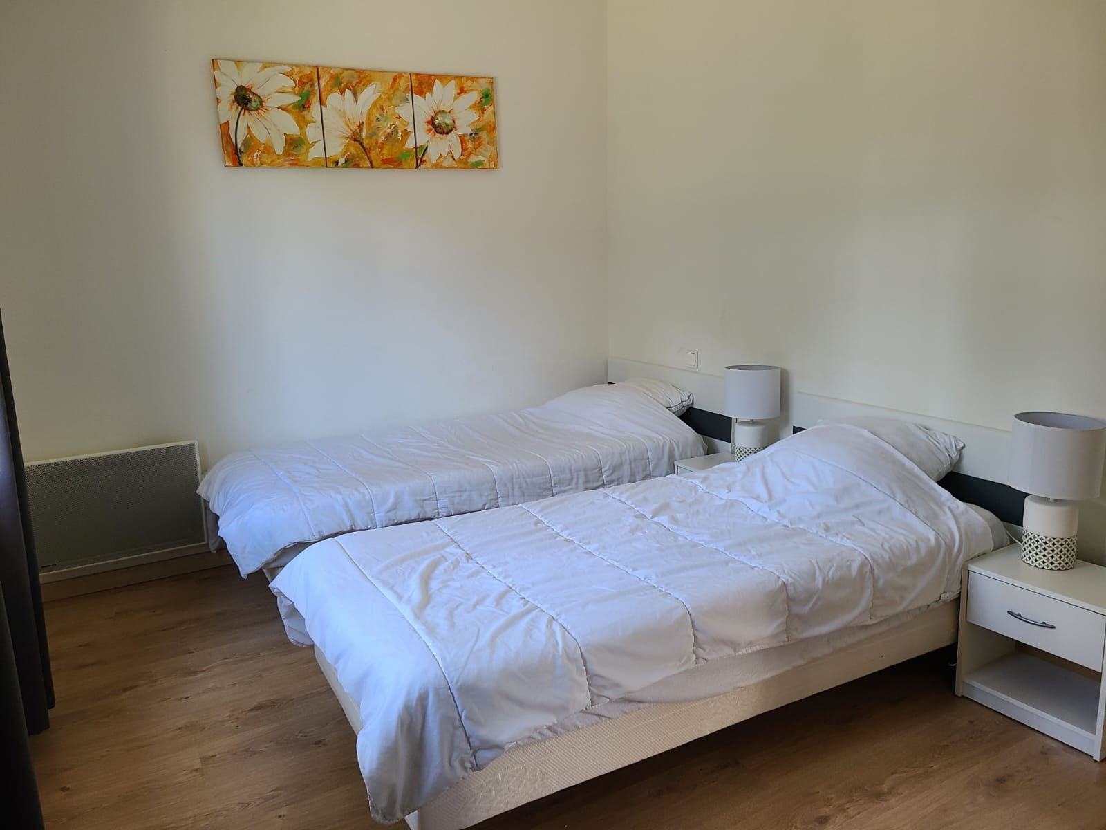 A l'étage une suite parentale avec un lit double (160) un grand dressing et une sdb avec douche et baignoire + wc attenant séparé et une chambre avec 2 lits simples.